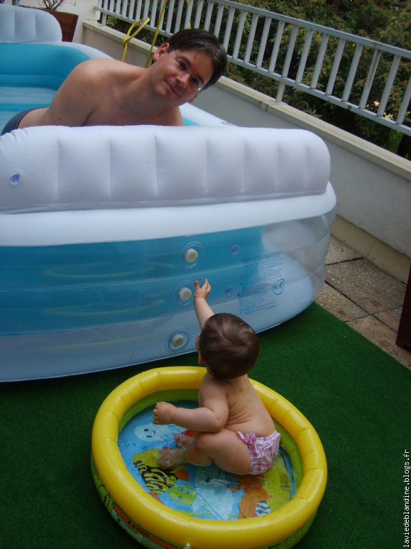 Ça profite bien de la piscine ce petit monde. Vous n'avez pas essayé de la prendre avec vous dans la grande ?
